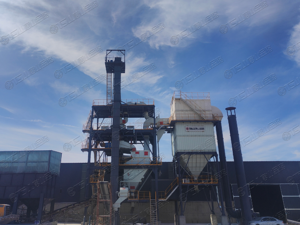 原料經(jīng)過(guò)電子秤進(jìn)入到皮帶輸送機(jī)中,由全封閉的提升機(jī)將物料入到五孔碾磨制砂機(jī)內(nèi)進(jìn)行破碎處理,再由空氣篩對(duì)破碎后的物料進(jìn)行篩分、選粉處理,篩分后的較大物料會(huì)返回五孔碾磨制砂機(jī)中進(jìn)行二次破碎,符合要求的砂子則由傳送帶輸送至成品倉(cāng)中;篩分過(guò)程中的粉塵會(huì)經(jīng)粗細(xì)粉分離機(jī)進(jìn)入到布袋收塵器內(nèi),而其中較大的粗顆粒會(huì)在粗細(xì)粉分離機(jī)的作用下,按需求在成品砂中進(jìn)行回?fù)?,?xì)粉塵將通過(guò)風(fēng)力進(jìn)入到布袋收塵器,作為副產(chǎn)品進(jìn)行使用。